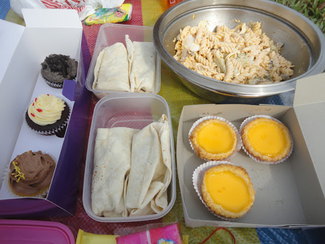 I'm so darn proud of myself because i think my cooking skills is awesome! Hehe. I made pasta salad and lemon chicken wraps for the picnic yesterday. I decided to make lemon sauce the very last minute so i had to go down to buy the ingredients. The moment i woke up, i was busy all the way and rushing to cook/bathe/pack because the boy kept rushing me but i ended up reaching earlier than him -___-